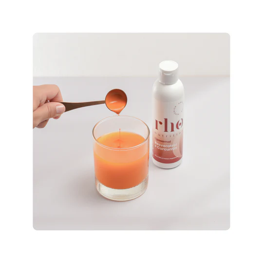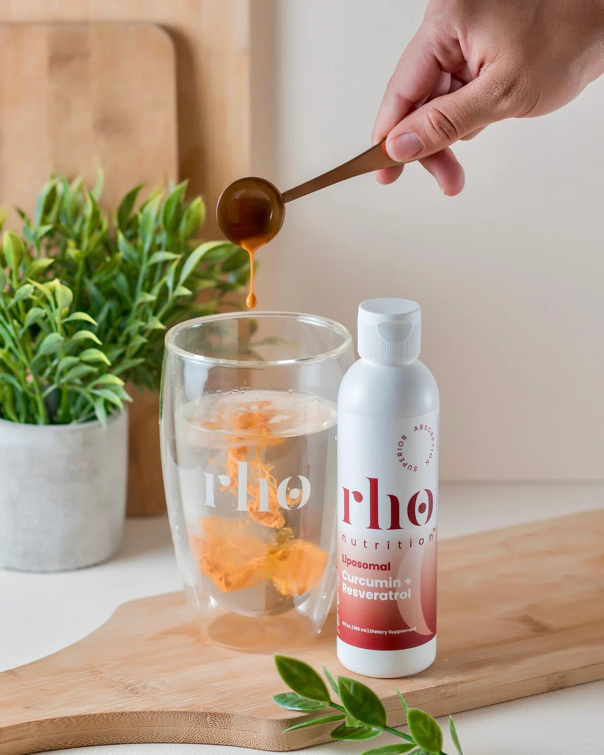 I take a teaspoon of Rho Curcumin + Resveratrol in the afternoon to help support a healthy inflammation response, improve my immune system and support healthy aging on a cellular level.