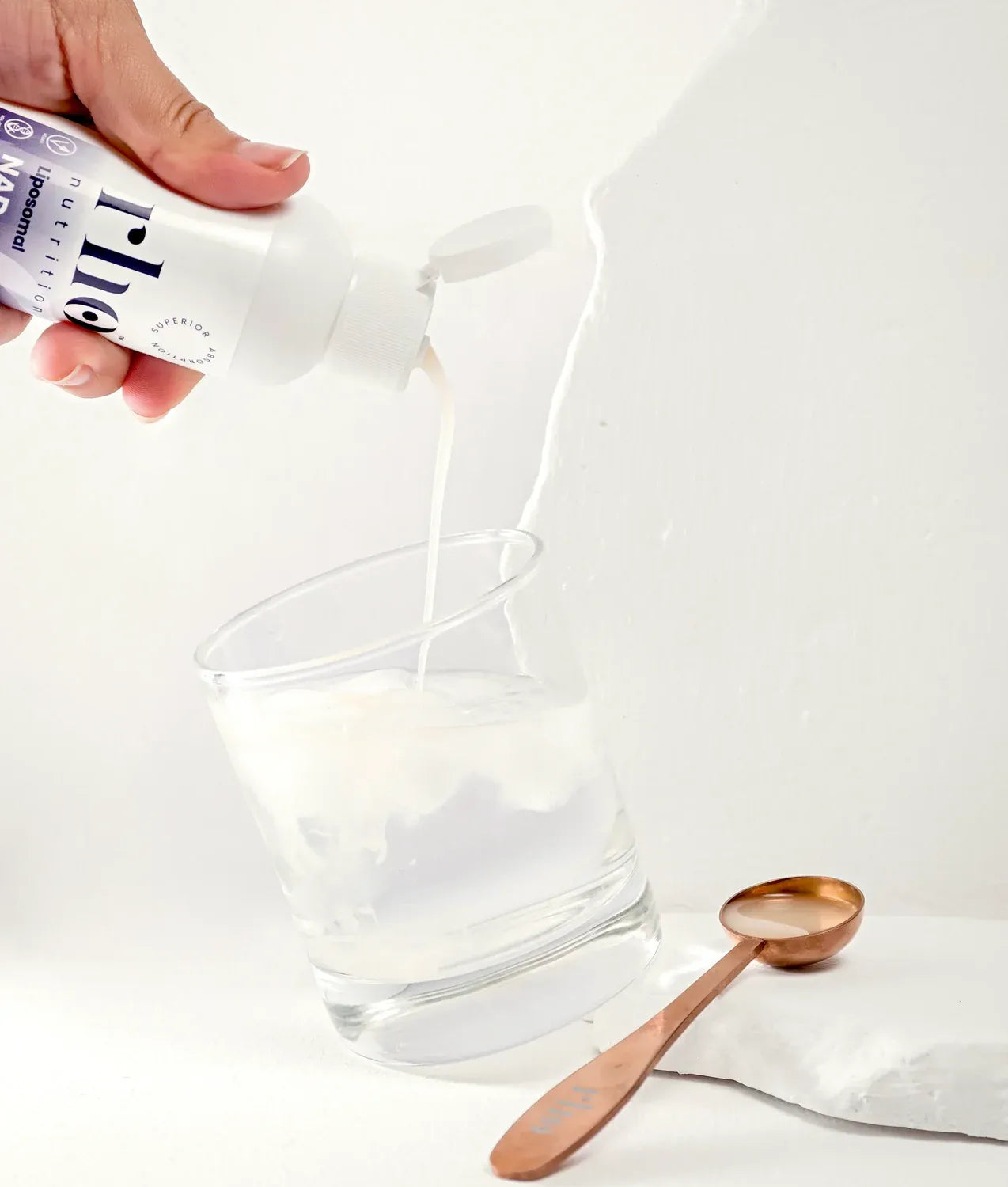 I add Rho NAD+ to my morning glass of spring water to energize my cells and support cellular longevity. This gives me sharp focus and clean energy throughout the day.